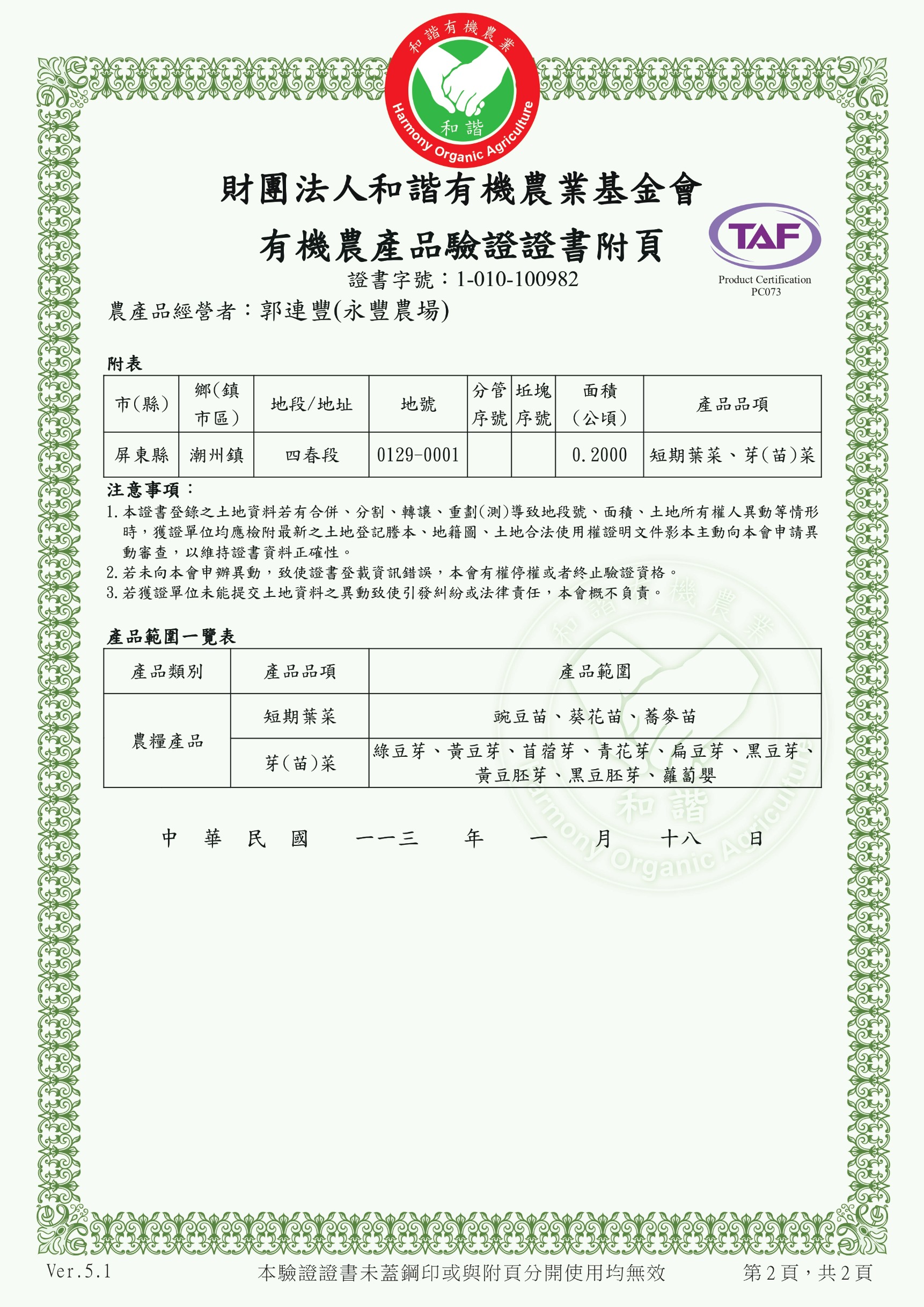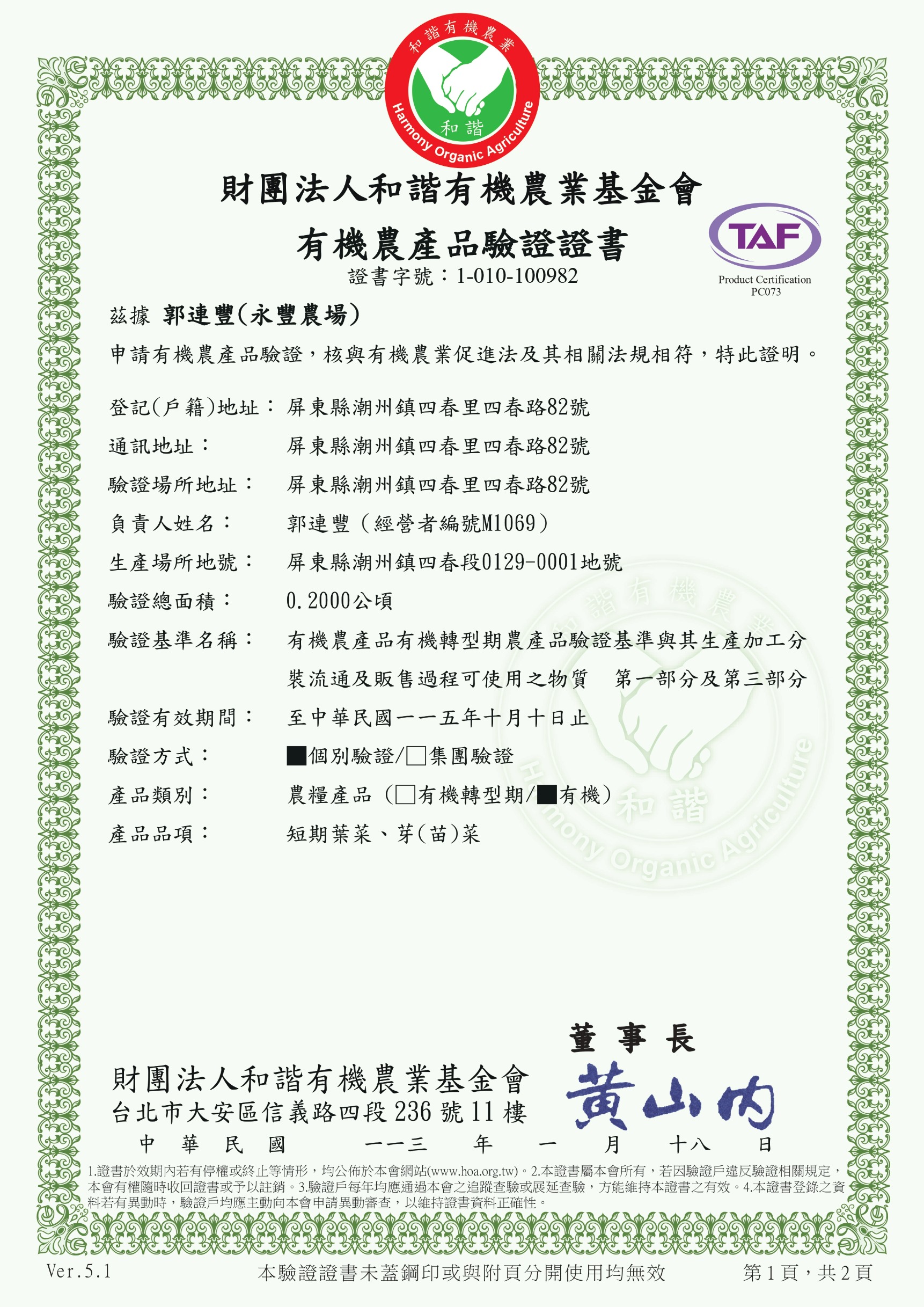 為了確保消費者吃的健康,我們用最嚴格的態度來檢視自己的產品。不僅通過第三方和諧有機農業基金會的驗證,連源頭的種子也擁有有機認證,共同為全民守護食品安全。